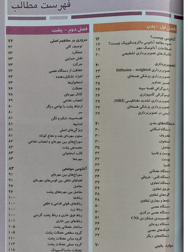 فهرست کتاب آناتومی گری– جلد اول (تنه):