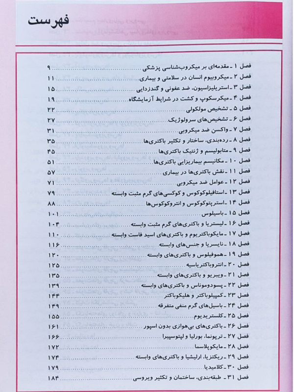 فهرست کتاب خلاصه میکروب‌شناسی مورای